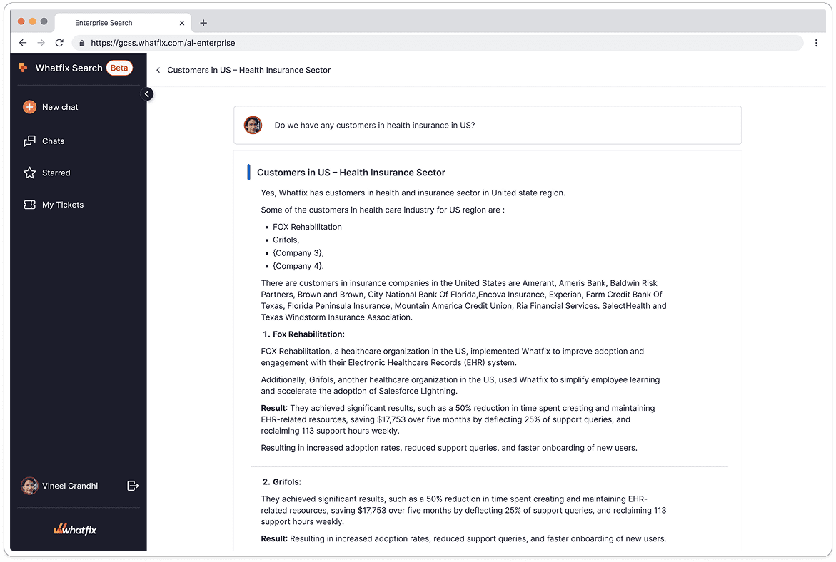 Enterprise Search designed to deliver complete answers by default, with contextual follow-ups from trusted systems like Salesforce and Confluenceโkeeping conversations fast, fluid, and reliable.